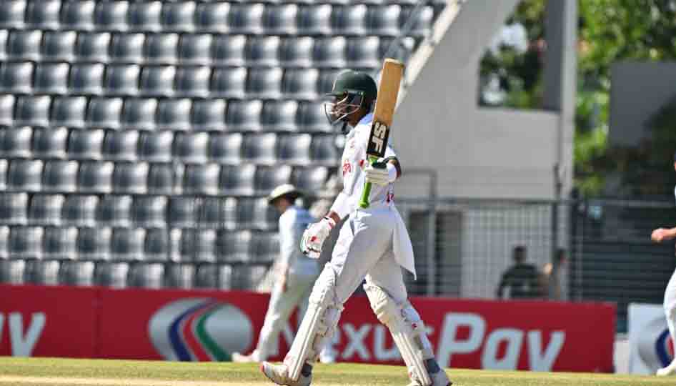 দিনের শুরুতে আশা ছিল ক্যারিয়ারের প্রথম দ্বিশতক করবেন মাহমুদুল হাসান জয়। আগের দিনের ১৬৯ রানের সঙ্গে আর মাত্র দুই যোগ করেই আউট হয়েছেন তিনি। তাতে ডাবল সেঞ্চুরি মিসের হতাশা নিয়ে প্যাভিলিয়নে ফেরেন। পরে আগের দিনের আরেক অপরাজিত ব্যাটার মমিনুল হকও ফিরেছেন আগেভাগেই। তাতে মধ্যাহ্ন বিরতির আগে বাংলাদেশের সংগ্রহ