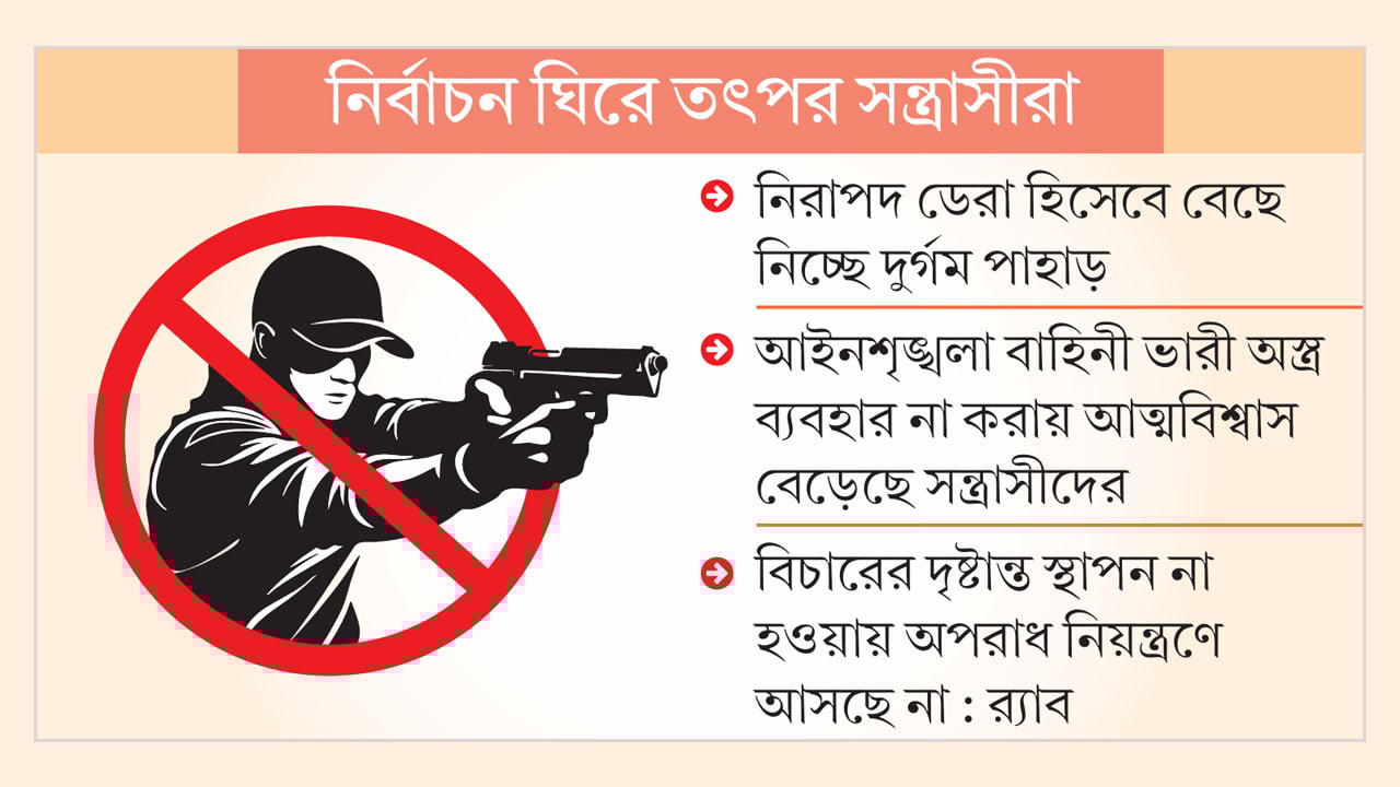 র্যাব কর্মকর্তার মতে, উদ্বেগের বিষয় হলো—এখন সন্ত্রাসীরা কাজ ভাগ করে নিয়েছে: কেউ শুধু হুমকি দেয়, কেউ শুধু চাঁদা তোলে, কেউ কেবল শুটার হিসেবে কাজ করে। এতে তাদের শনাক্ত করা কঠিন হয়ে পড়ছে। তবে আইনশৃঙ্খলা বাহিনীও কৌশল বদলেছে, শিগগিরই পরিস্থিতির উন্নতি হবে বলে আশা করছেন তিনি।