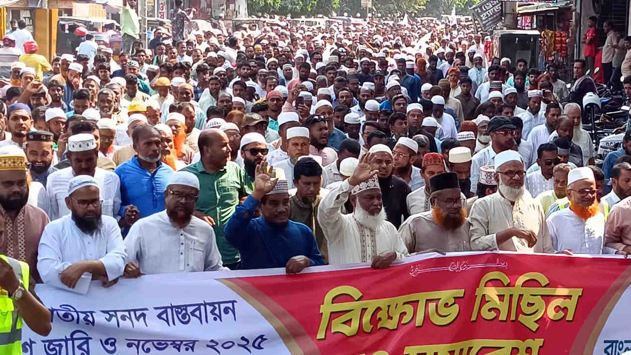 জুলাই জাতীয় সনদ বাস্তবায়নের আদেশ জারি ও নভেম্বরে গণভোট আয়োজনসহ ৫ দফা দাবিতে ঝিনাইদহে বিক্ষোভ মিছিল ও সমাবেশ করেছে জামায়াতে ইসলামী।