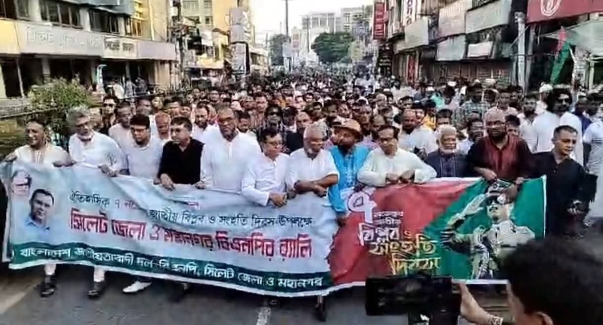 ঐতিহাসিক ৭ নভেম্বর জাতীয় বিপ্লব ও সংহতি দিবস উপলক্ষে সিলেট জেলা ও মহানগর বিএনপির উদ্যোগে নগরীতে এক বিশাল র্যালি বের কর হয়। শুক্রবার বিকেলে বাদ আসর নগরীর কোর্ট পয়েন্ট থেকে শুরু হয়ে র্যালিটি শহীদ মিনারে গিয়ে শেষ হয়।