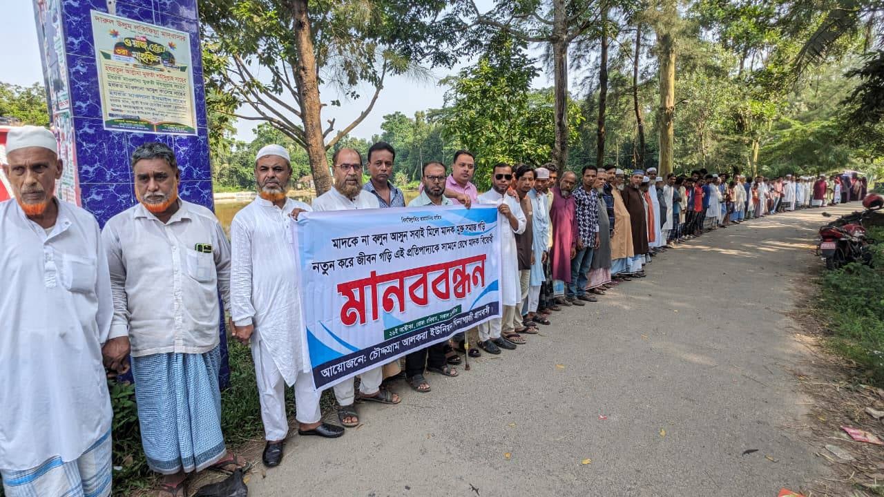 মাদক প্রতিরোধে ঐক্যবদ্ধ কুমিল্লার চৌদ্দগ্রাম উপজেলার আলকরা ইউনিয়নের ঘিনাগাজী গ্রামবাসী। "মাদককে না বলি, আসুন সবাই মিলে মাদকমুক্ত সমাজ গড়ি, নতুন জীবন গড়ি" এই প্রতিপাদ্যে রোববার ঘিনাগাজী সড়কে এলাকার সর্বস্তরের নারী পুরুষের অংশগ্রহণে মানববন্ধন অনুষ্ঠিত হয়।