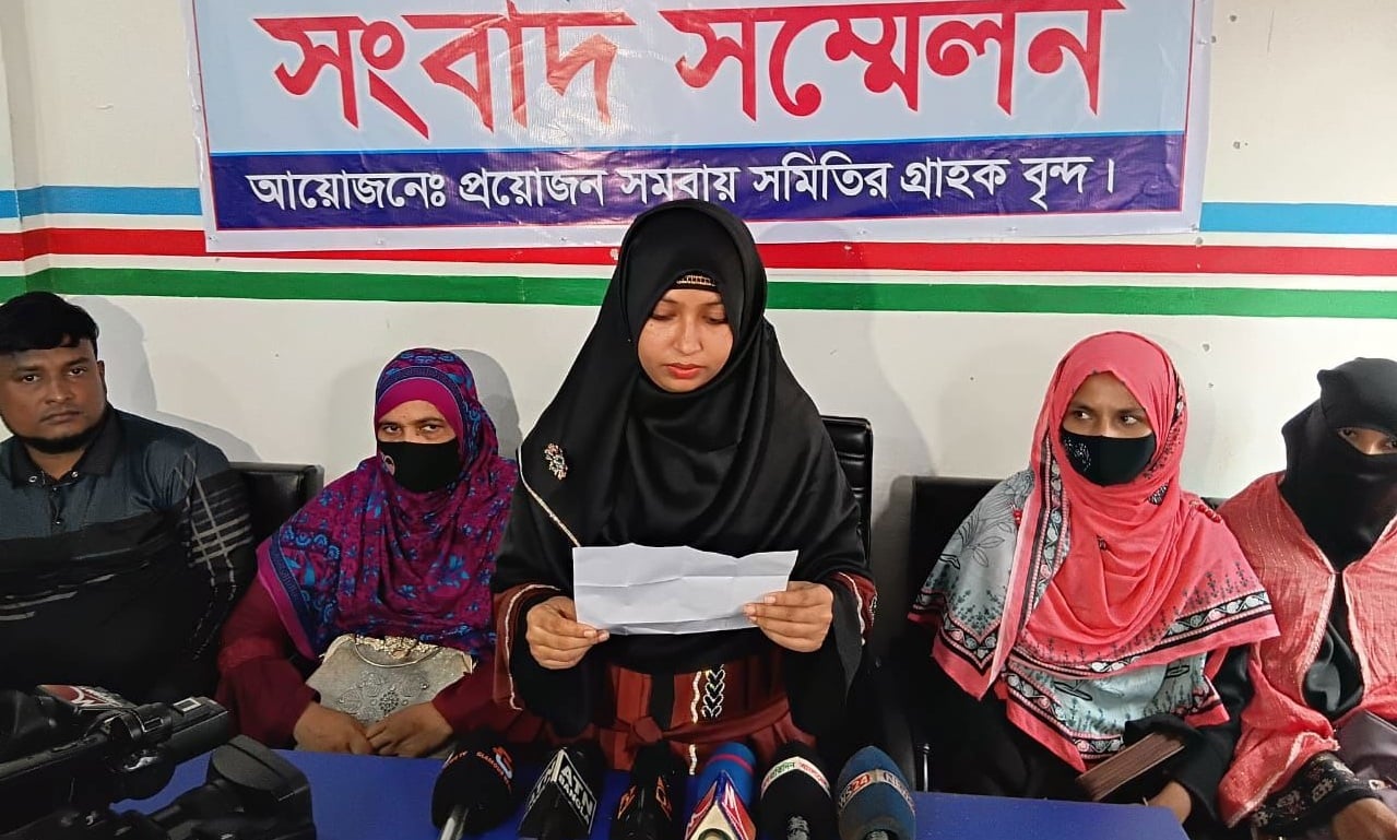 ভোলার চরফ্যাশনে প্রয়োজন সমবায় সমিতির গ্রাহকবৃন্দতে মব সৃষ্টি করে প্রতিষ্ঠানকে ধ্বংসের অভিযোগে সংবাদ সম্মেলন করা হয়েছে।