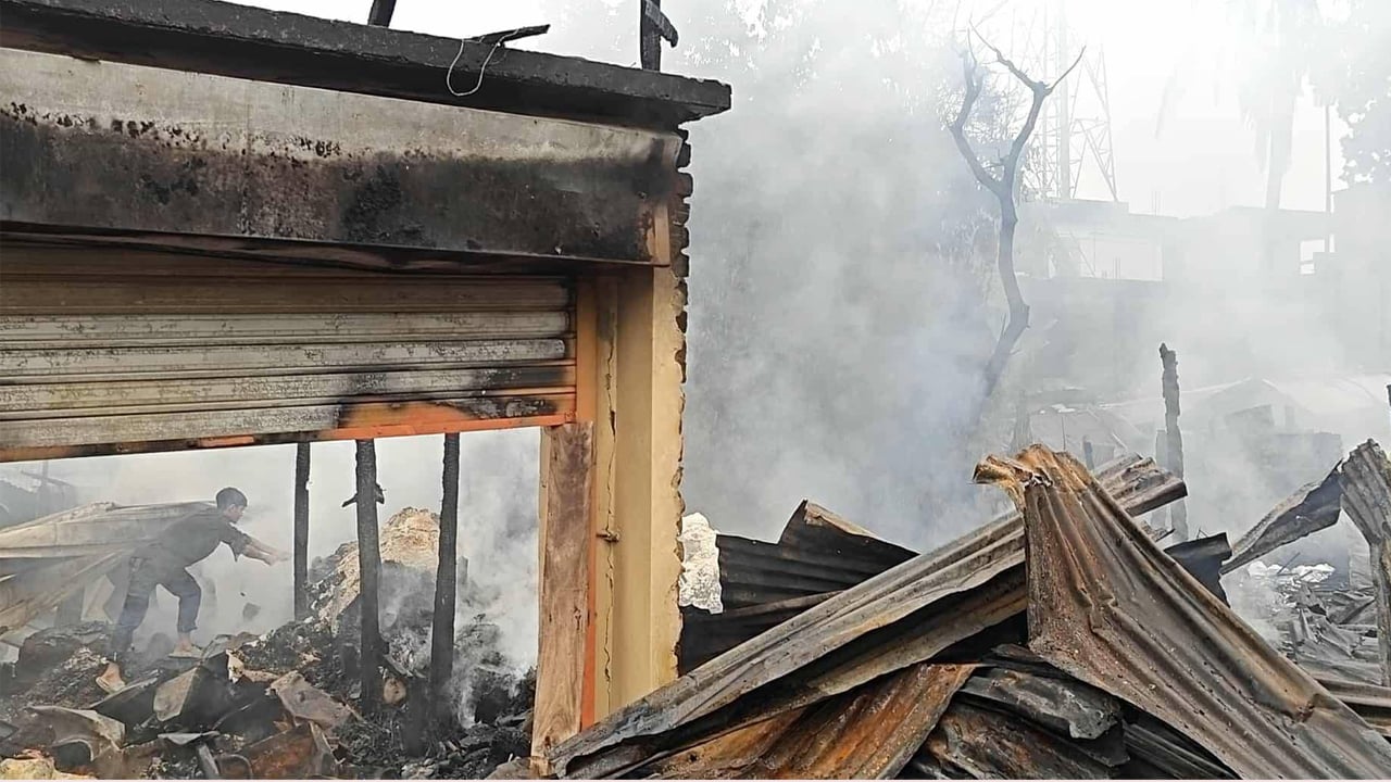 বাজার মসজিদের সামনে একটি দোকানে আগুন লাগে। পরে মুহূর্তেই তা ছড়িয়ে পড়ে। পানি সংকটের কারণে ফায়ার সার্ভিসের দুটি ইউনিট ঘটনাস্থলে পৌঁছালেও কাজ করা পুরোপুরি সম্ভব হয়নি।