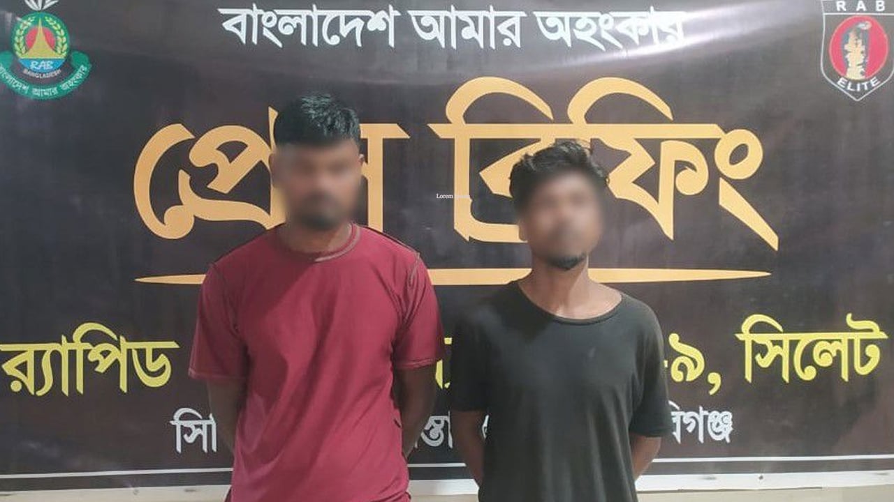 র্যাব-৯ সিপিসি-৩ শায়েস্তাগঞ্জ ক্যাম্পের একটি আভিযানিক দল মৌলভীবাজার জেলার কমলগঞ্জের মৃত্তিক চা বাগানের রবি উরাংয়ের ছেলে জনক উরাং (৪০) ও চুনারুঘাট উপজেলার রামগঙ্গা চা বাগান এলাকার মৃত কমন ভৌমিকের ছেলে দুলাল ভৌমিককে (৩৫) গ্রেপ্তার করে।