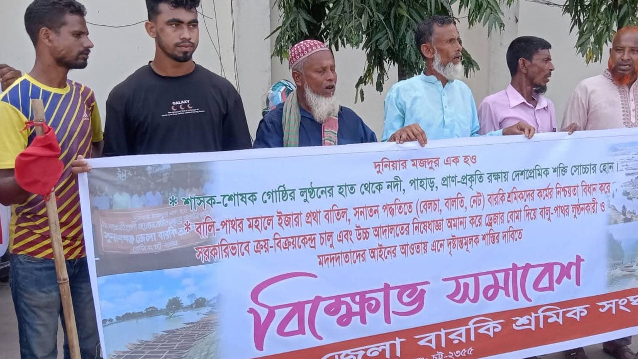 ৮ মিনিট আগেসুনামগঞ্জে ইজারা প্রথা বাতিল করে শ্রমিকদের কর্মসংস্থানের ব্যবস্থা, ড্রেজার-বোমার আগ্রাসন বন্ধসহ পাঁচ দফা দাবিতে বিক্ষোভ ও সমাবেশ অনুষ্ঠিত হয়েছে। বৃহস্পতিবার দুপুরে জেলা প্রশাসকের কার্যালয়ের সামনে সমাবেশের আয়োজন করে বারকি শ্রমিক সংঘ।