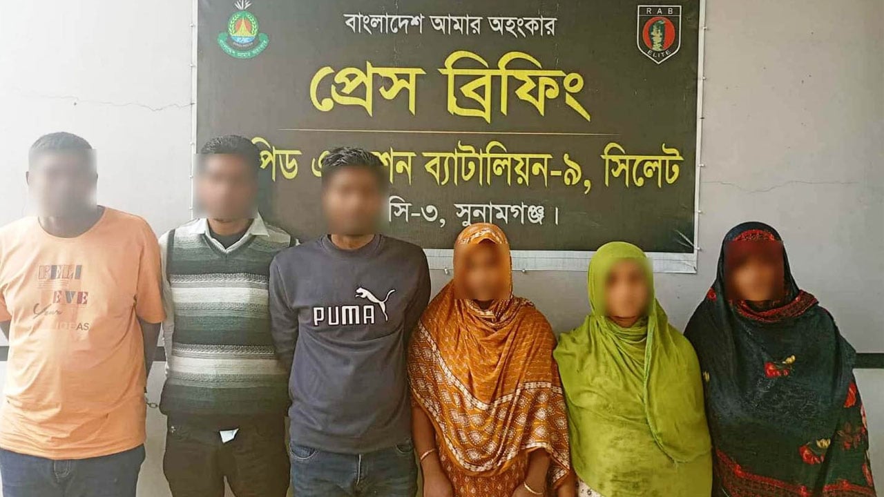 সুনামগঞ্জের স্থানীয় ব্যবসায়ীদের কাছ থেকে ভুয়া ব্যবসায়ী সেজে কোটি টাকা হাতিয়ে নেওয়ার অভিযোগে প্রতারকচক্রের ৬ সদস্যকে গ্রেপ্তার করেছে র্যাব-৯। মঙ্গলবার রাতে গাইবান্ধা জেলার গোবিন্দগঞ্জ থানার শ্রীবর্দীপুর ঘোষপাড়া এলাকায় বিশেষ অভিযান চালিয়ে তাদের গ্রেপ্তার করা হয়।