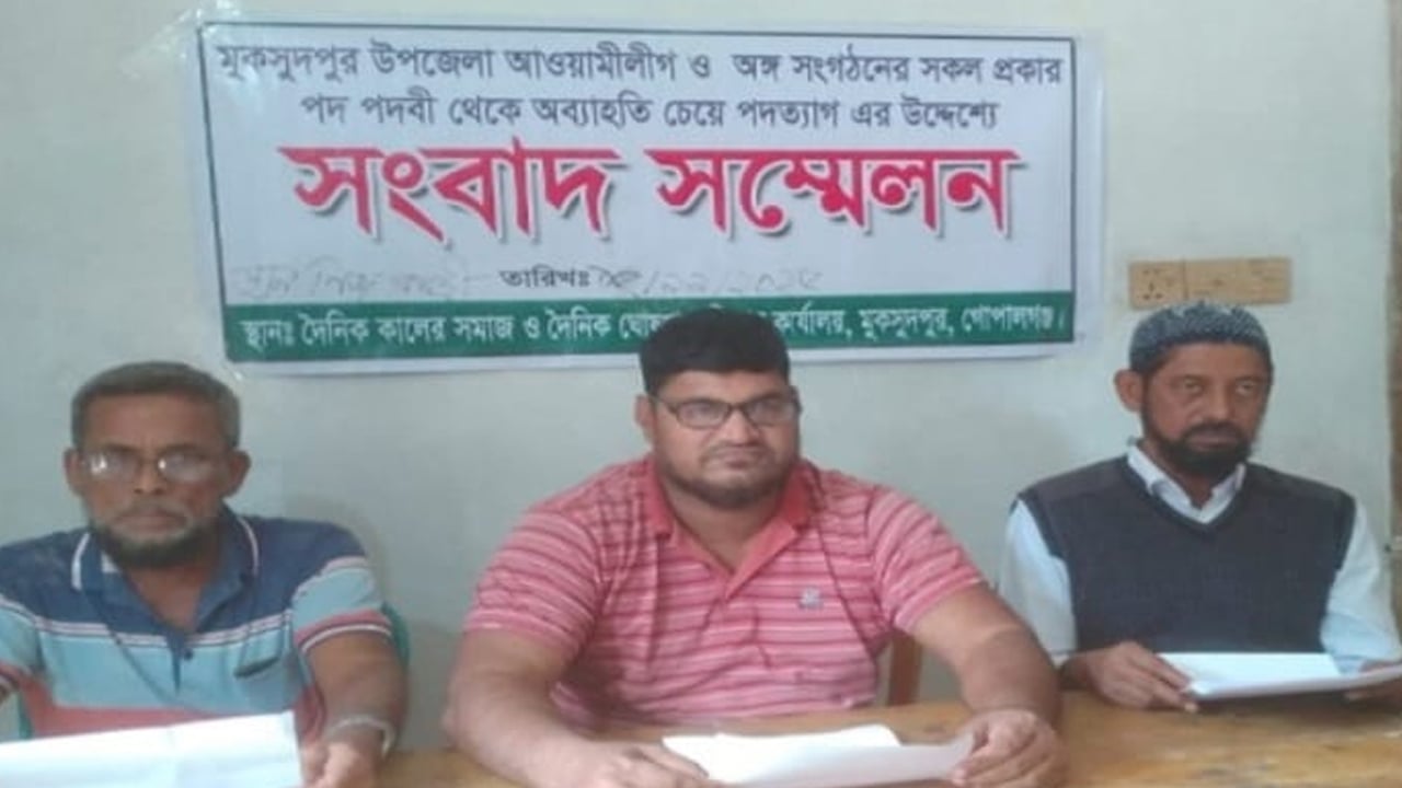 গোপালগঞ্জের টুঙ্গিপাড়া ও মুকসুদপুরে আওয়ামী-লীগের ৫ নেতা সংবাদ সম্মেলনের মাধ্যমে পদত্যাগের ঘোষণা দিয়েছেন। সোমবার (১৭ নভেম্বর) সকালে টুঙ্গীপাড়া উপজেলার কুশলী ইউনিয়নের নিজ বাড়িতে সংবাদ সম্মেলনের আয়োজন করে আওয়ামী-লীগ থেকে পদত্যাগের ঘোষণা দেন কুশলী ইউনিয়নের ৫ নং ওয়ার্ড আওয়ামী-লীগের সভাপতি তয়েব শেখ।