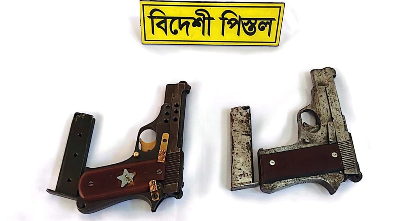 ঢাকার দক্ষিণ কেরানীগঞ্জের বাগবাড়ী রাজপাড়া এলাকায় পরিত্যক্ত অবস্থায় দুটি বিদেশি পিস্তল ও দুটি ম্যাগাজিন উদ্ধার করেছে র্যাব। রোববার (৯ নভেম্বর) দুপুরে র্যাব-১০ এর সহকারী পরিচালক (মিডিয়া) তাপস কর্মকার বিষয়টি নিশ্চিত করে