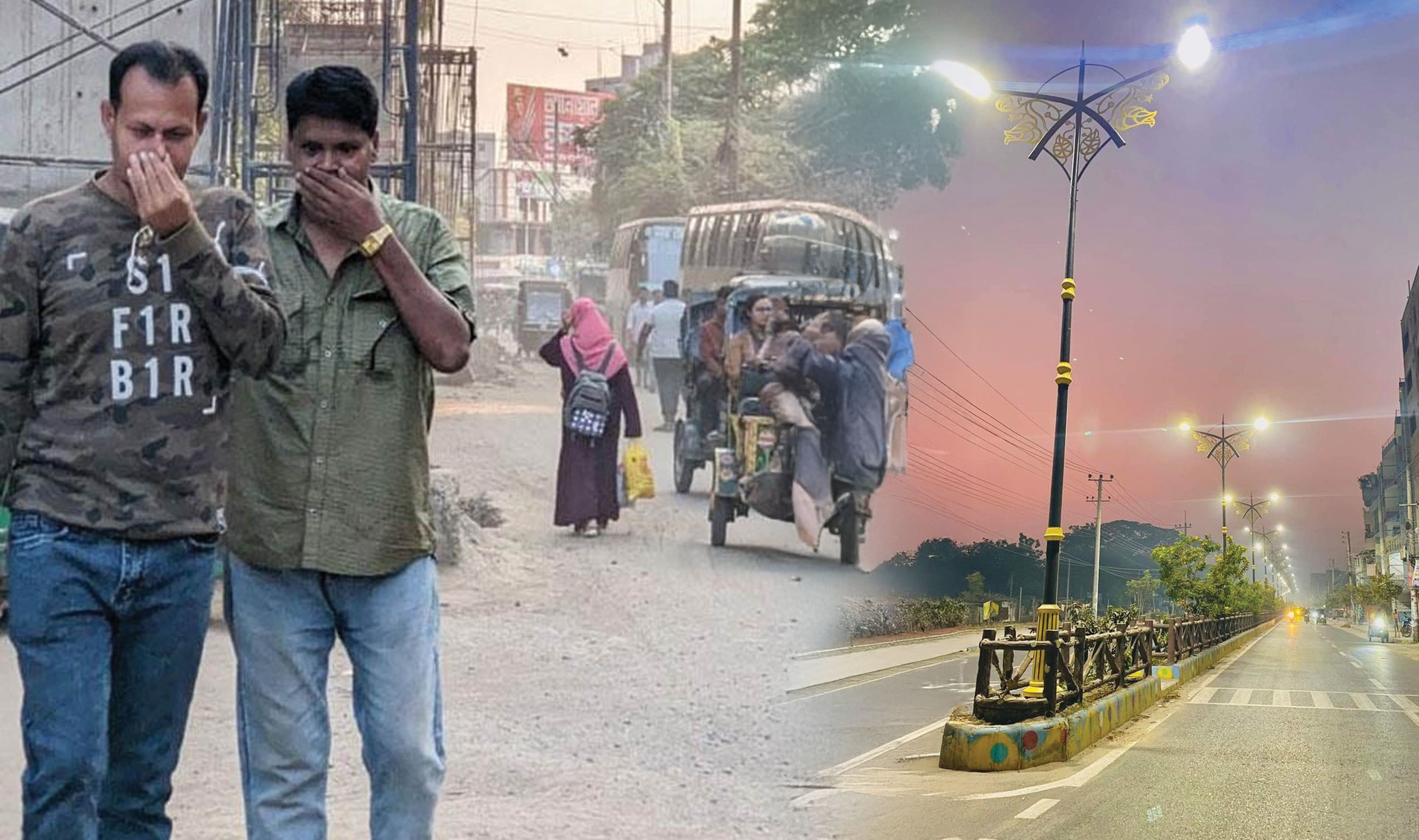 রাজশাহী নগরীর ভদ্রা, শিরোইল, সাহেববাজার, সোনাদিঘী—সবখানেই এখন ধুলোর আস্তরণ। ফ্লাইওভার ও ভবন নির্মাণের বালু, ইট, খোয়া পড়ে আছে খোলা জায়গায়। শহরের ভেতর দিয়ে চলাচল করছে পুরোনো বাস, ট্রাক, অটোরিকশা—যেগুলো থেকে বের হচ্ছে কালো ধোঁয়া। ফলে বাতাসে ছড়িয়ে পড়ছে পিএম-২.৫ নামের অতিক্ষুদ্র কণা, যা সরাসরি ফুসফুসে প্রবেশ করে শ্বাসযন্ত্রের মারাত্মক ক্ষতি করে।