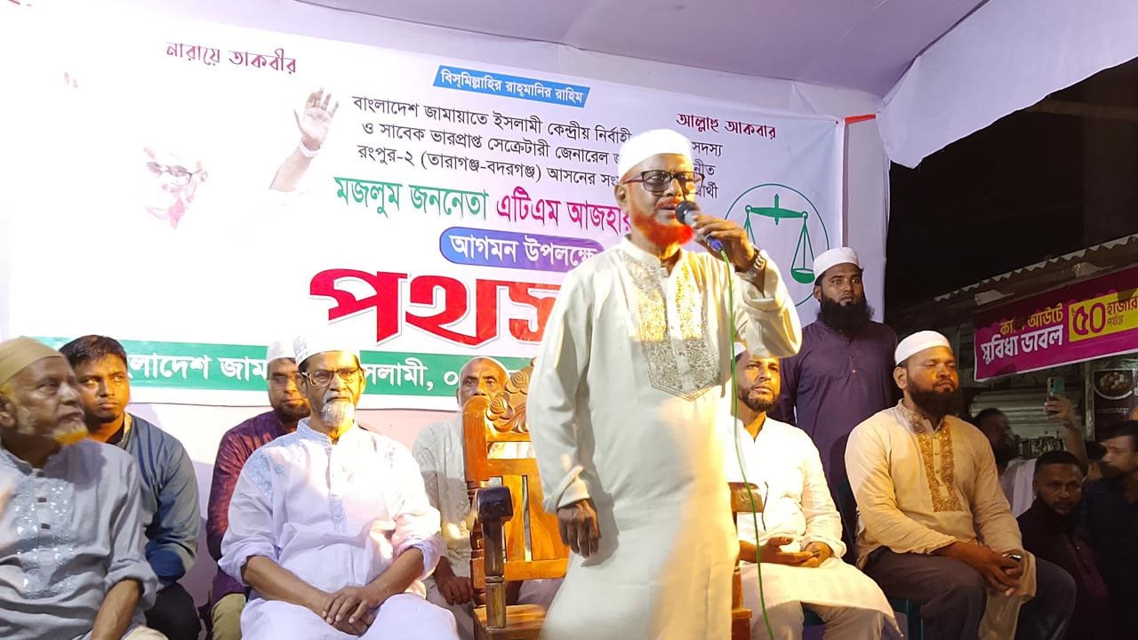 শনিবার সন্ধ্যা ৬টায় তারাগঞ্জ উপজেলার কুর্শা ইউনিয়নের ঘনিরামপুর বেলতলী মেডিকেল মোড়ে এক পথসভায় তিনি এসব কথা বলেন। উপজেলা জামায়াতে ইসলামীর উদ্যোগে আয়োজিত এই সভায় প্রধান অতিথির বক্তব্য রাখেন তিনি।
