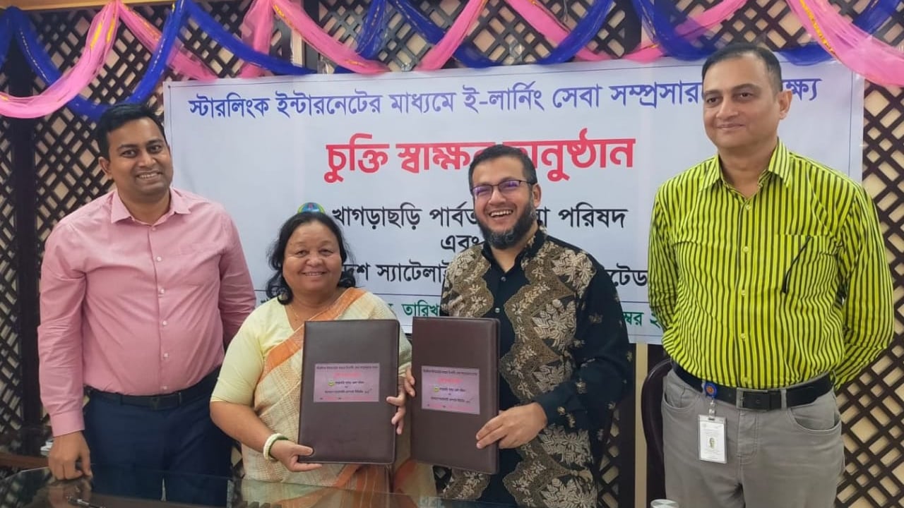 খাগড়াছড়ির পাহাড়ি অঞ্চলের শিক্ষার্থীদের জন্য ডিজিটাল শিক্ষার নতুন দিগন্ত উন্মোচনের লক্ষে বাংলাদেশ স্যাটেলাইট কোম্পানি লিমিটেড (বিএসসিএল) এবং খাগড়াছড়ি পার্বত্য জেলা পরিষদ এর মধ্যে একটি চুক্তি স্বাক্ষরিত হয়েছে।