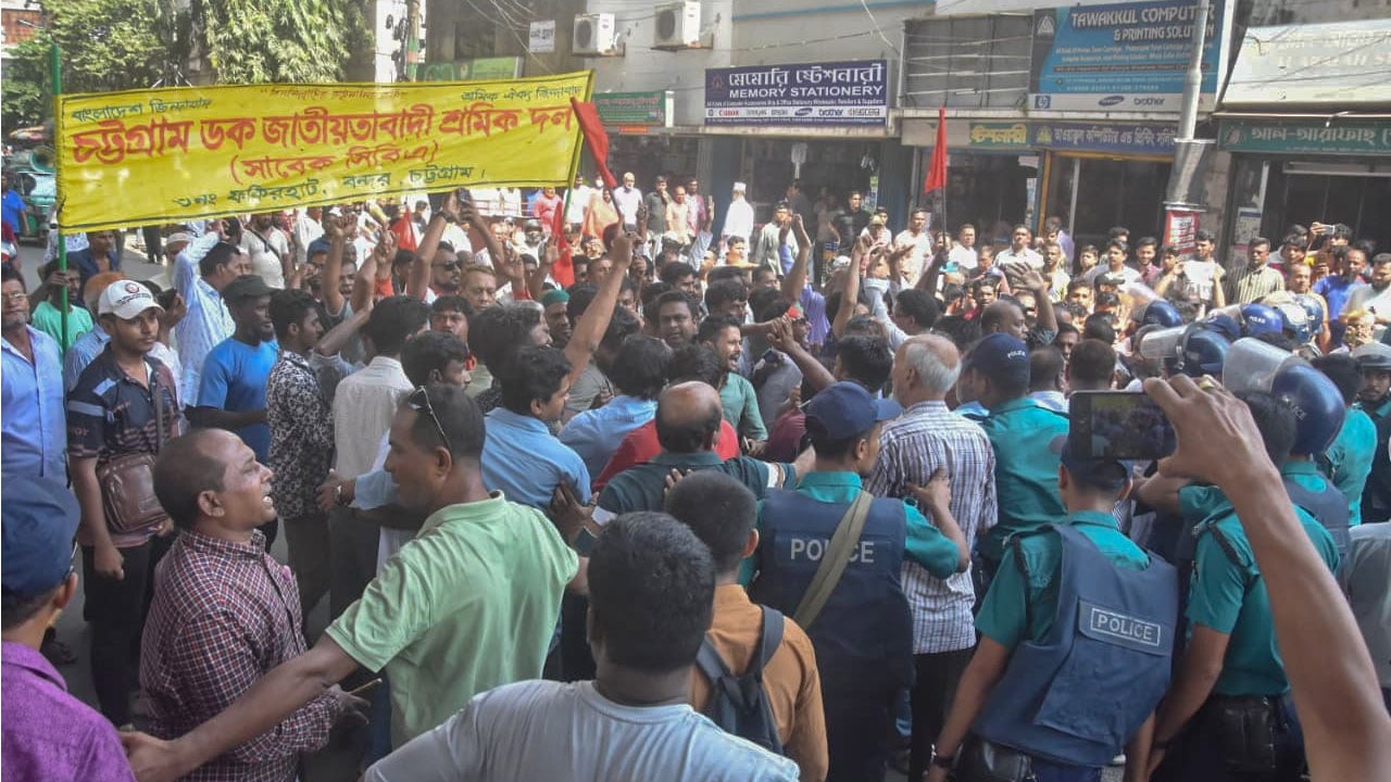 বুধবার দুপুরে নগরীর আগ্রাবাদ মোড়ে এই সমাবেশ অনুষ্ঠিত হয়। সমাবেশ শেষে মিছিল নিয়ে বন্দর ভবনের উদ্দেশ্যে রওনা হয় বিক্ষোভকারীরা। মিছিলটি বারিক বিল্ডিং মোড়ে পৌঁছলে পুলিশ মিছিলে বাধা দেয়।