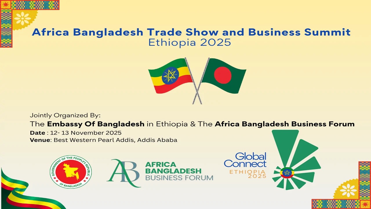 আফ্রিকা ও বাংলাদেশের মধ্যে বাণিজ্য ও বিনিয়োগ সম্পর্ক আরও জোরদার করার লক্ষ্য নিয়ে প্রথমবারের মতো ‘আফ্রিকা বাংলাদেশ ট্রেড শো অ্যান্ড বিজনেস সামিট ২০২৫’ অনুষ্ঠিত হতে যাচ্ছে ইথিওপিয়ার রাজধানী আদ্দিস আবাবায়। আগামী ১২ ও ১৩ নভেম্বর এই সামিট অনুষ্ঠিত হবে। এই আয়োজনটি যৌথভাবে আয়োজন করছে বাংলাদেশের ইথিওপিয়া দূতাবাস এবং আফ্রিকা বাংলাদেশ বিজনেস ফোরাম। ইভেন্টের ভেন্যু নির্ধারিত হয়েছে ডে লিওপোল হোটেল।