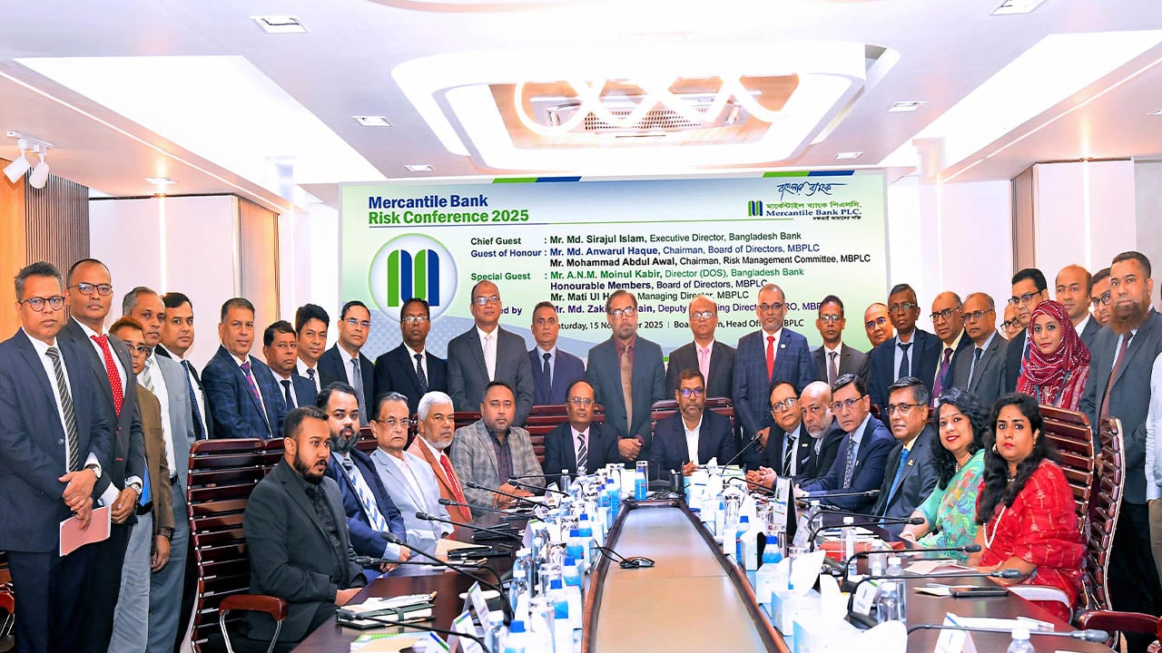মার্কেন্টাইল ব্যাংক পিএলসির ‘ঝুঁকি সম্মেলন ২০২৫’ ব্যাংকের প্রধান কার্যালয়ে শনিবার অনুষ্ঠিত হয়। অনুষ্ঠানে প্রধান অতিথি হিসেবে উপস্থিত ছিলেন বাংলাদেশ ব্যাংকের নির্বাহী পরিচালক মোঃ সিরাজুল ইসলাম।