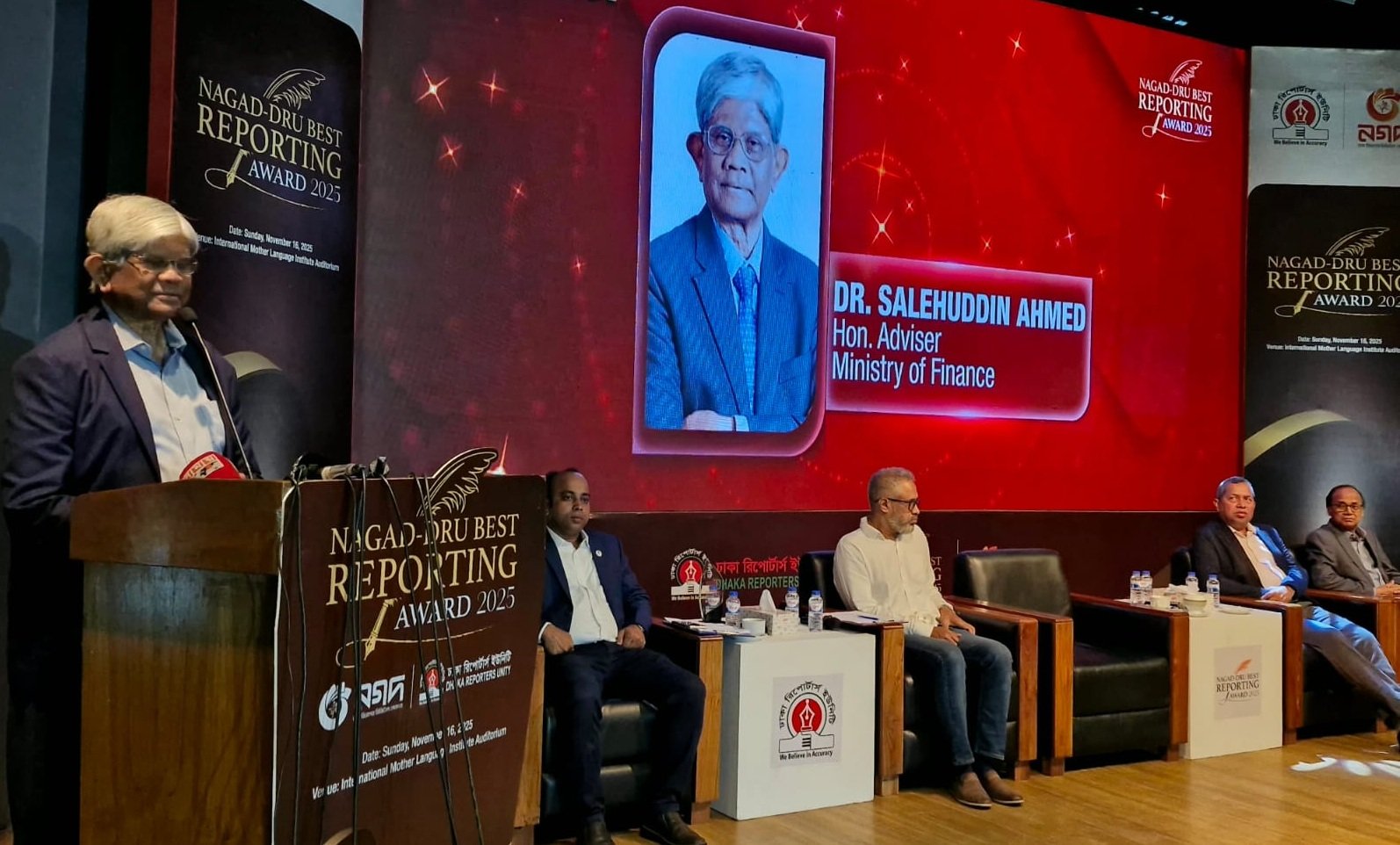 দেশের অর্থনীতি আগের চেয়ে ভালো অবস্থানে আছে বলে মন্তব্য করেছেন অর্থ উপদেষ্টা ড. সালেহউদ্দিন আহমেদ। রোববার রাজধানীর আন্তর্জাতিক মাতৃভাষা ইনস্টিটিউটে ঢাকা রিপোর্টার্স ইউনিটি (ডিআরইউ) বেস্ট রিপোর্টিং অ্যাওয়ার্ড অনুষ্ঠানে প্রধান অতিথির বক্তব্যে তিনি এ কথা বলেন।