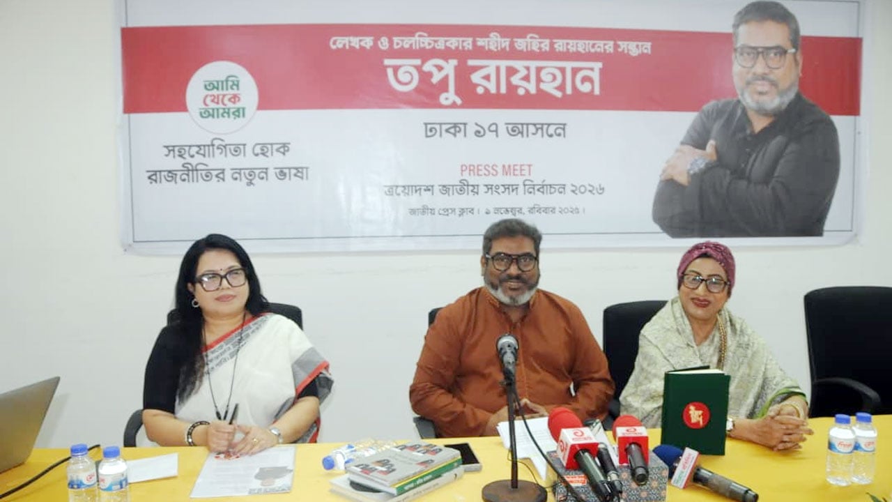 রোববার জাতীয় প্রেসক্লাবে এক সংবাদ সম্মেলনে তিনি এসব কথা বলেন। সেখানে চলচ্চিত্রকার জহির রায়হানের পুত্র তপু রায়হানের ঢাকা-১৭ আসনে আসন্ন জাতীয় সংসদ নির্বাচনে প্রার্থিতা নিয়ে আলোচনা হয়।