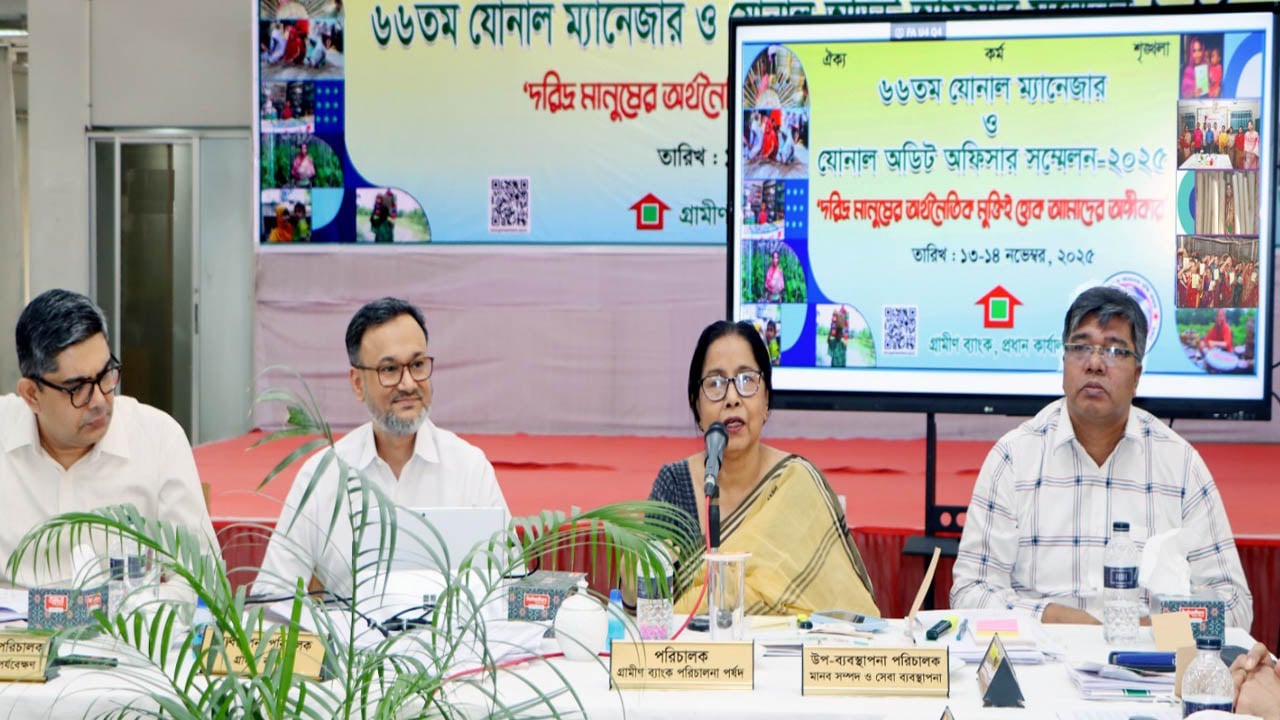 ‘দরিদ্র মানুষের অর্থনৈতিক মুক্তিই হোক আমাদের অঙ্গীকার’- প্রতিপাদ্য নিয়ে গ্রামীণ ব্যাংক প্রধান কার্যালয়ের অডিটোরিয়ামে (বৃহস্পতিবার, ১৩ নভেম্বর) থেকে শুরু হয়েছে দুই দিনব্যাপী ৬৬তম যোনাল ম্যানেজার ও যোনাল অডিট অফিসার সম্মেলন-২০২৫।