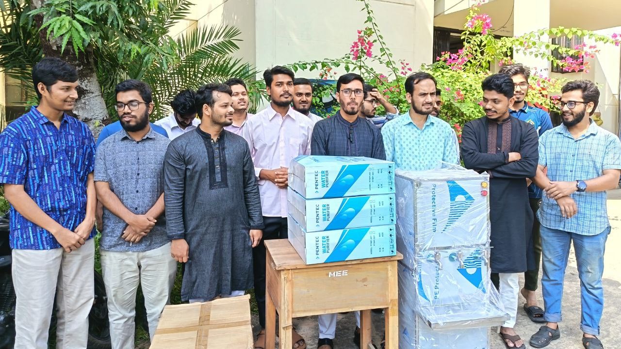 শাহজালাল বিজ্ঞান ও প্রযুক্তি বিশ্ববিদ্যালয়ে (শাবিপ্রবি) বিশুদ্ধ পানির সংকট নিরসনে মেয়েদের হলে পানির ফিল্টার বিতরণ করেছে বাংলাদেশ ইসলামী ছাত্রশিবিরের শাবিপ্রবি শাখা।