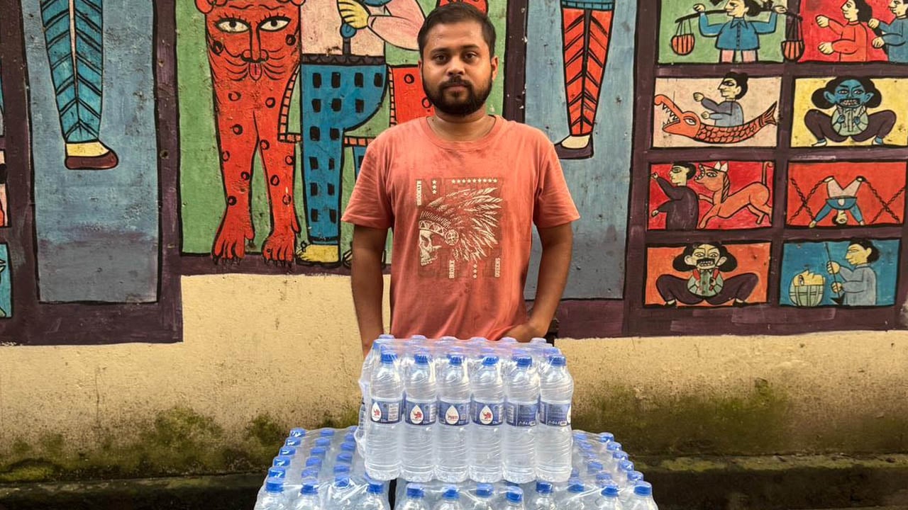 শুক্রবার (১০ অক্টোবর) সকালে বিশ্ববিদ্যালয়ের মূল গেটে পরীক্ষার্থীদের বাসে ওঠার আগে জবি ছাত্রদলের আহ্বায়ক সদস্য আবু বকর খান পরীক্ষার্থী যাত্রীদের হাতে বিশুদ্ধ পানির বোতল তুলে দেন।