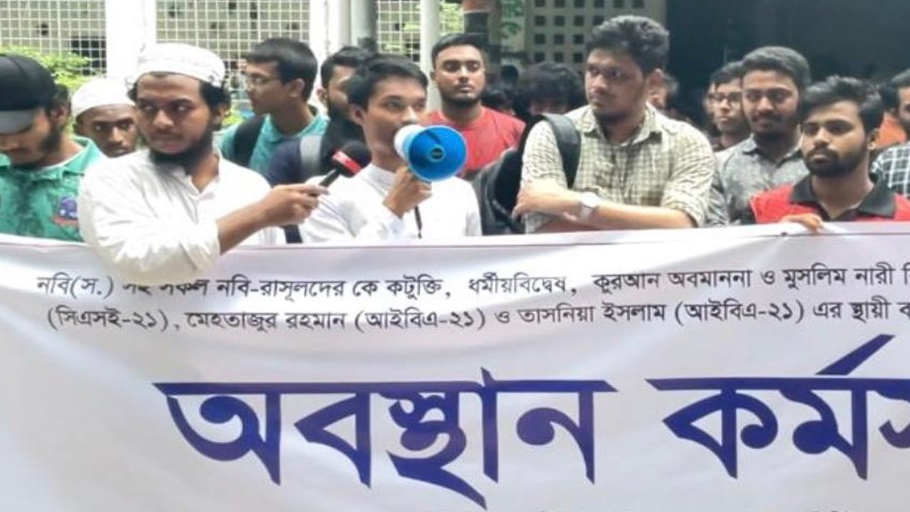 ইসলাম, কোরআন, মহানবী হযরত মোহাম্মদ (সা.) এবং মা আয়েশাকে অবমাননা করার অভিযোগ উঠেছে ঢাকা বিশ্ববিদ্যালয়ের তিন শিক্ষার্থীর বিরুদ্ধে। তিন জন হলেন মেহতাজুর রহমান (আইবিএ-২১), তাসনিয়া ইসলাম (আইবিএ-২১) এবং আবরার ফাইয়াজ (সিএসই-২১)। তিন জনই ২০২১-২২ সেশনের শিক্ষার্থী।