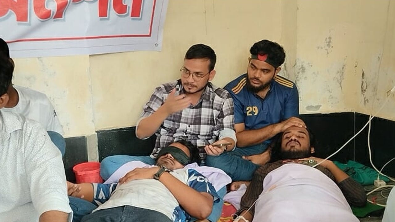 রাজশাহী বিশ্ববিদ্যালয়ের (রাবি) চিকিৎসা মনোবিজ্ঞান বিভাগের সভাপতির পদত্যাগের দাবিতে আমরণ অনশনে বসেছেন পাঁচ শিক্ষার্থী। টানা ২১ ঘণ্টা ধরে অনশনে থাকায় অসুস্থ হয়ে পড়েছেন তারা। এর মধ্যে গুরুতর অসুস্থ হওয়ায় দুই শিক্ষার্থীকে স্যালাইন দেওয়া হয়েছে।