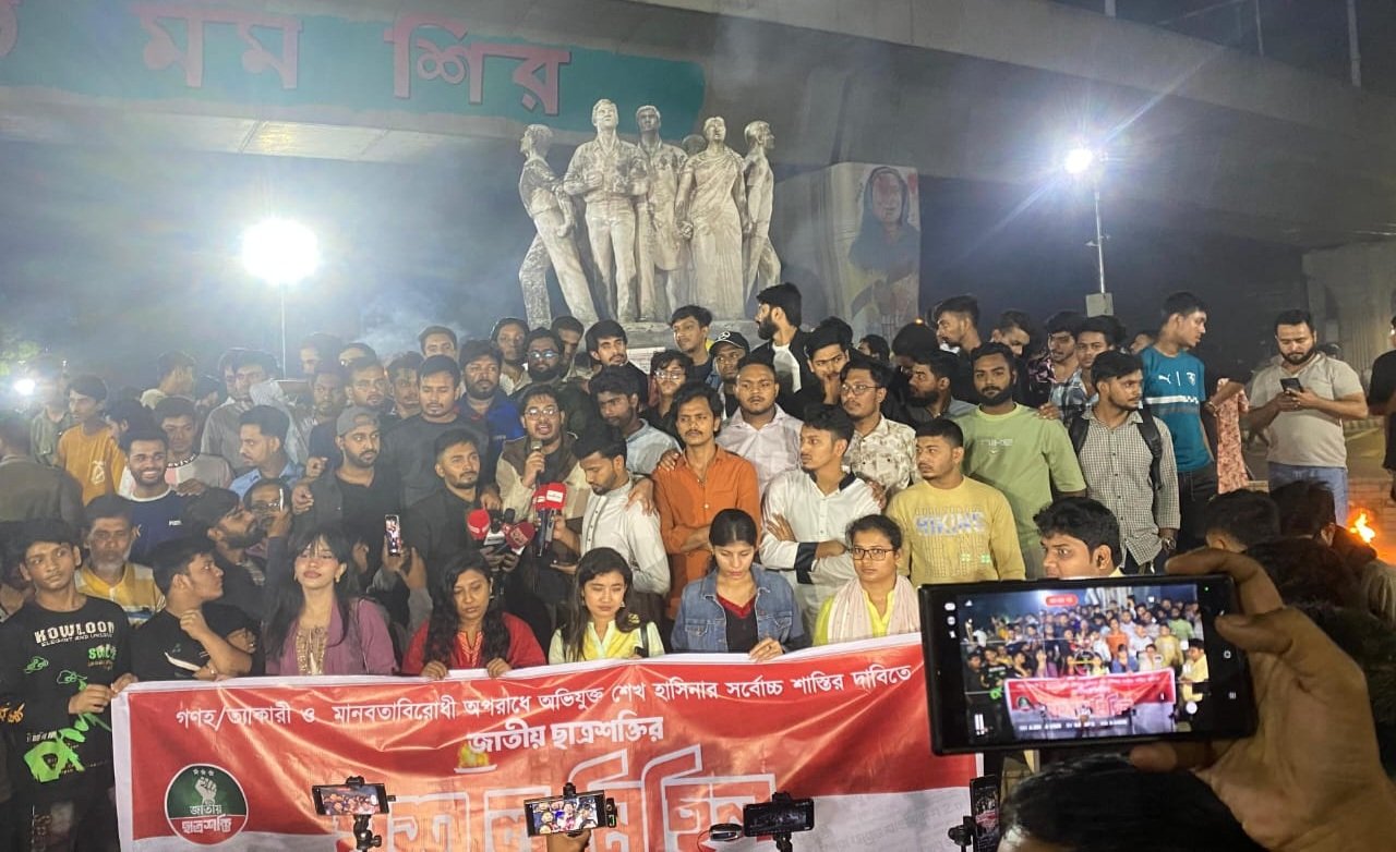 গণহত্যা, গুম-খুন ও মানবতাবিরোধী অপরাধের অভিযোগে আওয়ামী লীগ সভাপতি ও সাবেক প্রধানমন্ত্রী শেখ হাসিনার সর্বোচ্চ শাস্তির দাবিতে মশাল মিছিল করেছে জাতীয় ছাত্রশক্তি। রবিবার (১৬ নভেম্বর) সন্ধ্যা ৭টায় ঢাকা বিশ্ববিদ্যালয়ের রাজু ভাস্কর্যের পাদদেশে মিছিল শেষে সংক্ষিপ্ত সমাবেশ অনুষ্ঠিত হয়।