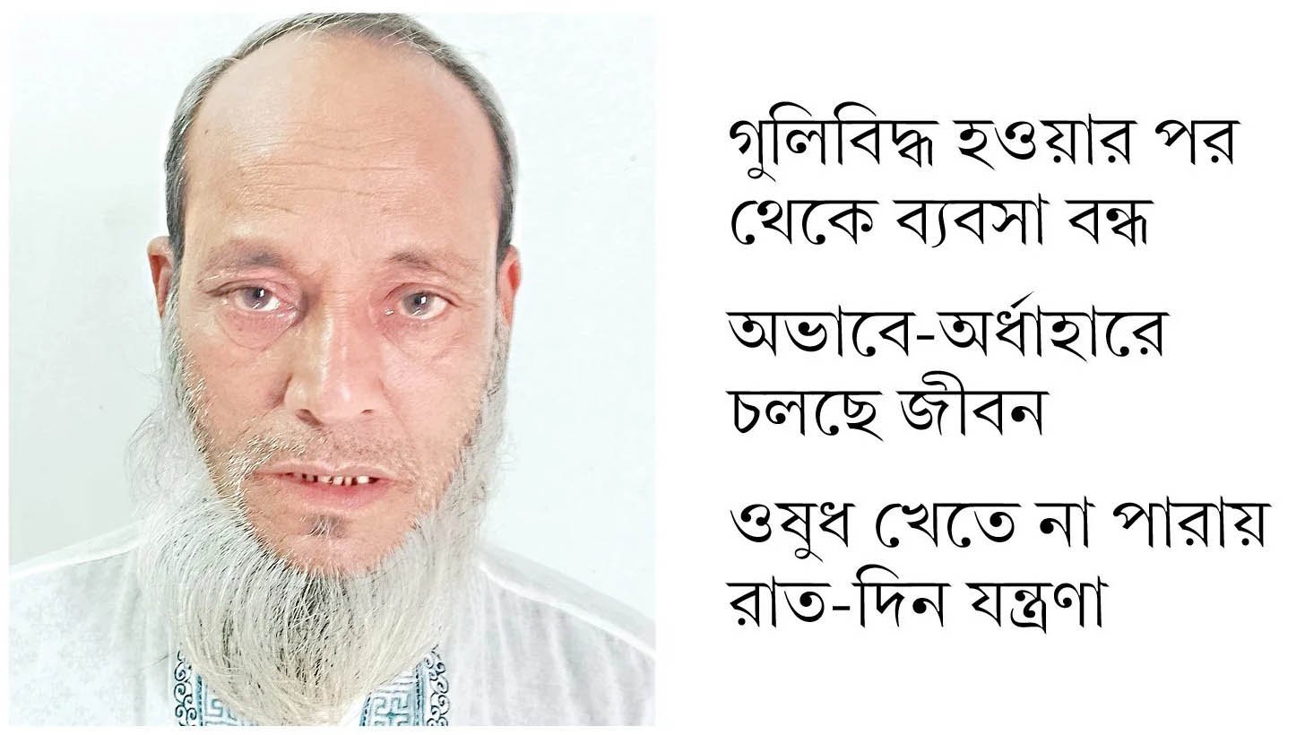 আব্দুল গফুর কিশোরগঞ্জের তাড়াইল উপজেলার ধলা ইউনিয়নের কলুমা পূর্বপাড়ার বাসিন্দা । তিনি পরিবারের একমাত্র উপার্জনক্ষম ব্যক্তি। গুলিবিদ্ধ হওয়ার পর থেকে ব্যবসা বন্ধ। এখনো চালু করা সম্ভব হয়নি। বর্তমানে অভাবে-অর্ধাহারে চলছে জীবনযাপন। পাশাপাশি প্রচণ্ড ব্যথায় ভুগছেন দিন-রাত।