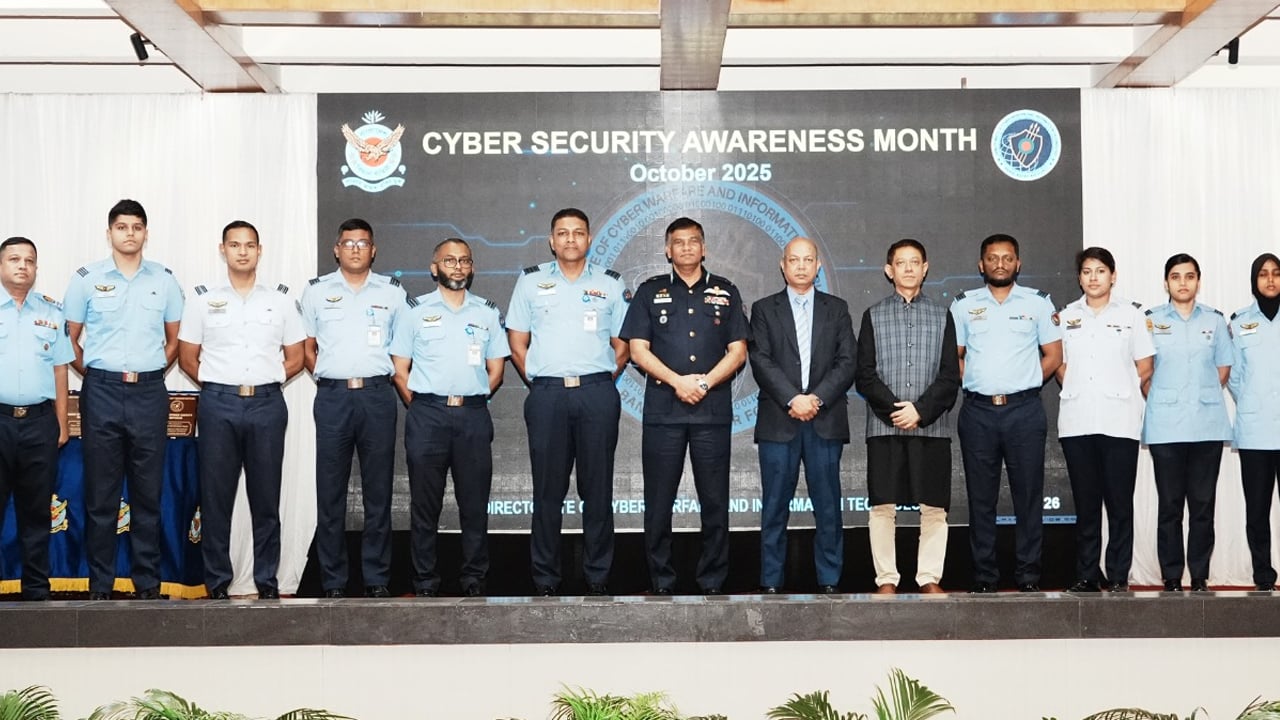 বাংলাদেশ বিমান বাহিনীর সাইবার সিকিউরিটি সচেতনতা মাস ২০২৫ এর সমাপনী অনুষ্ঠিত হয়েছে। মঙ্গলবার (২৮ অক্টোবর) ঢাকা সেনানিবাসের ফ্যালকন হলে এ সমাপনী অনুষ্ঠিত হয়। সমাপনী অনুষ্ঠানে প্রধান অতিথি ছিলেন সহকারী বিমান বাহিনী প্রধান (পরিচালন) এয়ার ভাইস মার্শাল জাভেদ তানভীর খান।