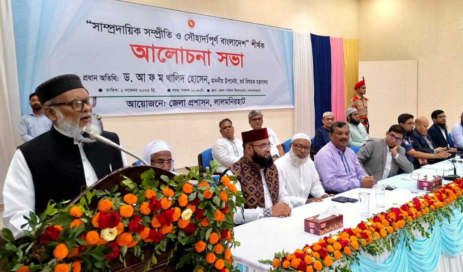 ধর্ম বিষয়ক উপদেষ্টা ড. আ ফ ম খালিদ হোসেন বলেছেন, বিগত স্বৈরাচার সরকারের সময় অনেক শিক্ষক দলবাজি করে চাকরি নিয়েছেন। শনিবার দুপুরে লালমনিরহাট জেলা পরিষদ অডিটরিয়ামে ‘সাম্প্রদায়িক সম্প্রীতি ও সৌহার্দ্যপূর্ণ বাংলাদেশ’ শীর্ষক আলোচনা সভায় প্রধান অতিথির বক্তব্যে তিনি এ কথা বলেন!