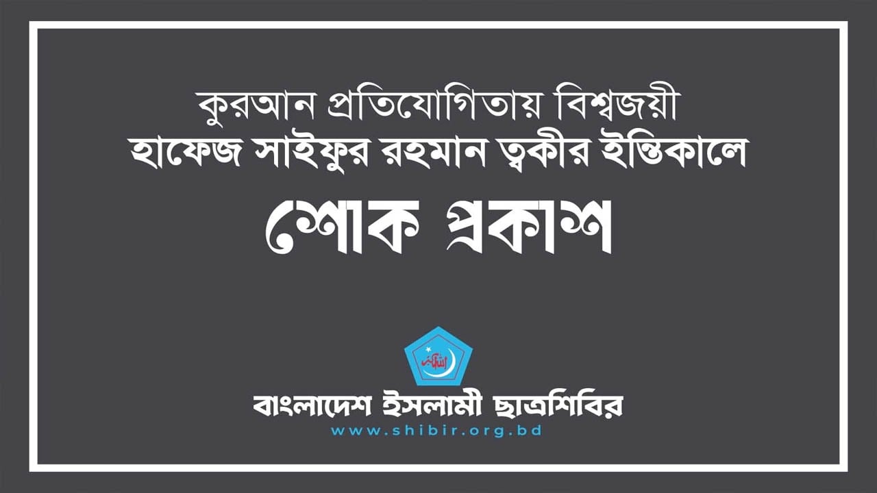 শোকবাণীতে নেতৃবৃন্দ বলেন, হাফেজ সাইফুর রহমান ত্বকী জর্ডান, কুয়েত ও বাহরাইনের আন্তর্জাতিক হিফজুল কুরআন প্রতিযোগিতায় প্রথম স্থান অর্জনের মাধ্যমে বাংলাদেশের নাম বিশ্বমঞ্চে উজ্জ্বল করেছিলেন। তার এই অর্জন মুসলিম বিশ্বের তরুণদের জন্য অনুপ্রেরণার উৎস হয়ে থাকবে।