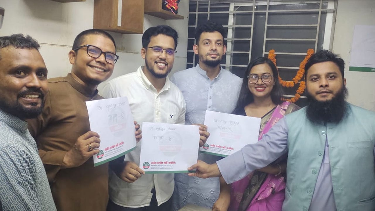 আসন্ন ত্রয়োদশ জাতীয় সংসদ নির্বাচনে অংশ নিতে জাতীয় নাগরিক পার্টি থেকে মনোনয়ন ফরম তুলেছেন জাতীয় যুবশক্তির তিন শীর্ষ নেতা। বুধবার সন্ধ্যায় রাজধানীর বাংলা মোটরে এনসিপির অস্থায়ী কার্যালয় থেকে বিপুল সংখ্যক নেতাকর্মী নিয়ে মিছিল সহকারে মনোনয়ন ফরম নেন তারা।
