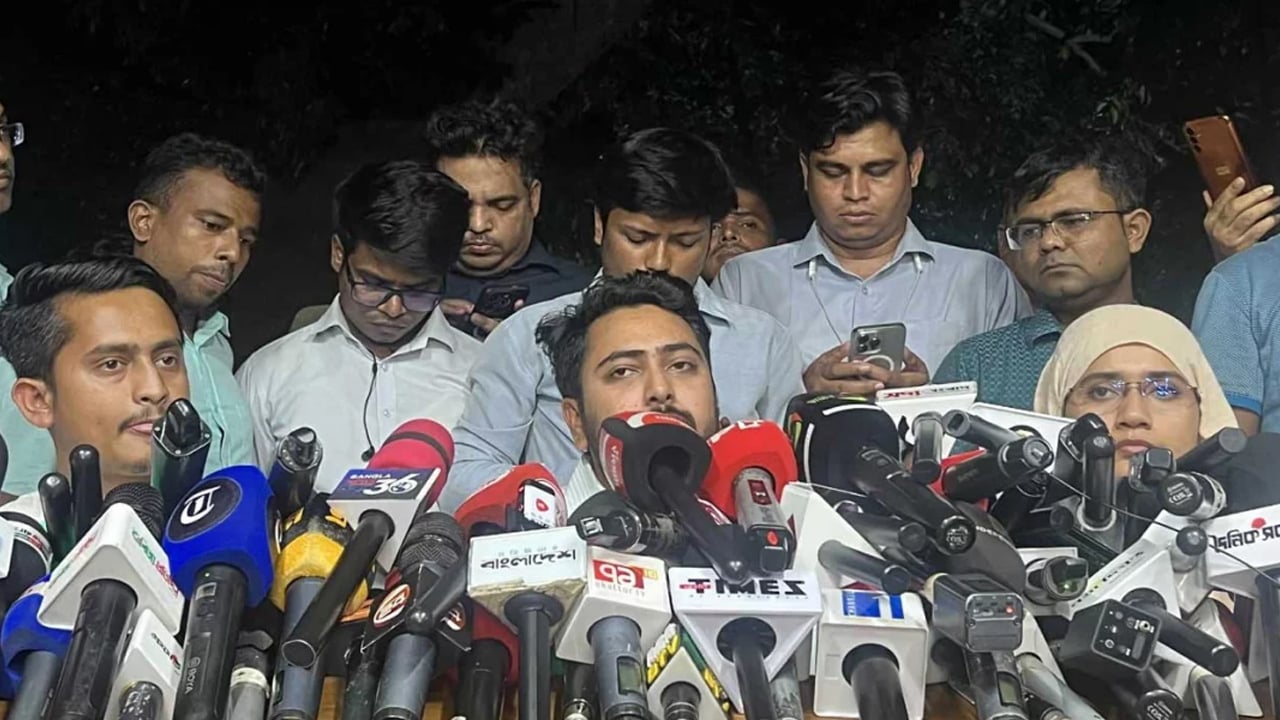 ১৭ মিনিট আগেএর আগে বিকেল ৫টার দিকে তারা যমুনায় পৌঁছান। নাহিদ ইসলামের নেতৃত্বে প্রতিনিধি দলে ছিলেন- দলের উত্তরাঞ্চলের মুখ্য সংগঠক সারজিস আলম, জ্যেষ্ঠ যুগ্ম আহ্বায়ক সামান্তা শারমিন ও যুগ্ম আহ্বায়ক খালেদ সাইফুল্লাহ।