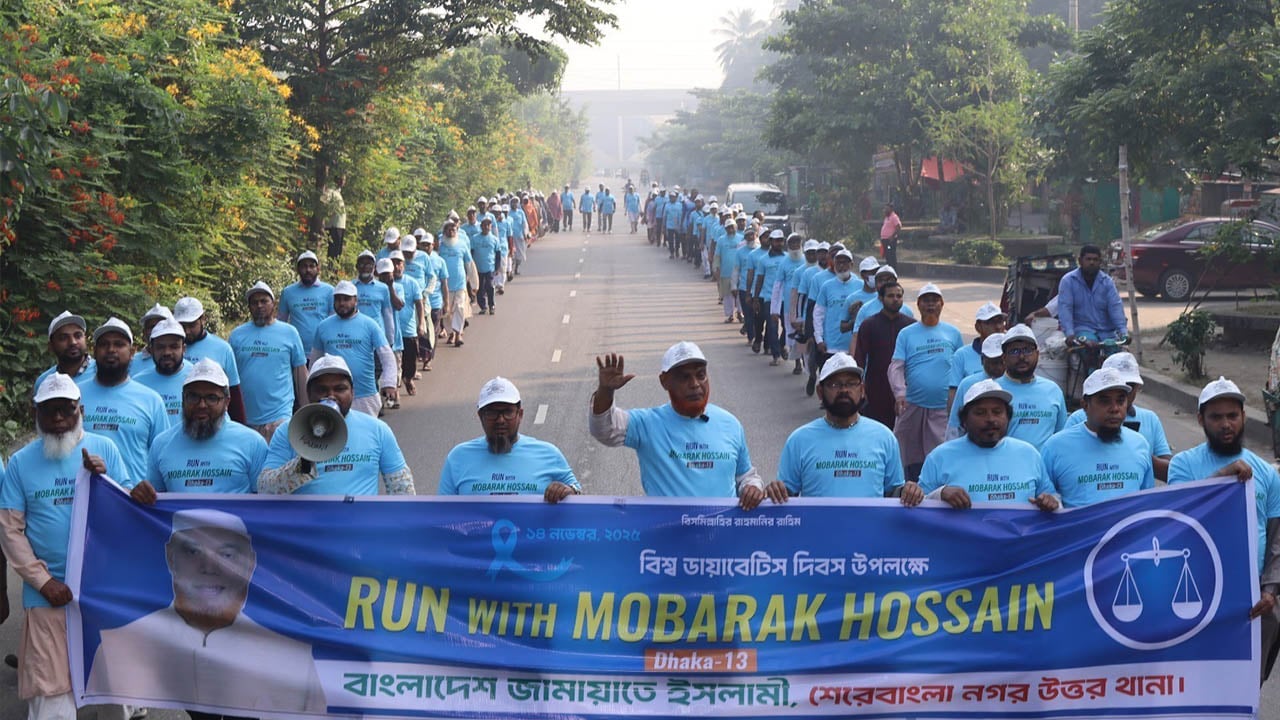 বিশ্ব ডায়াবেটিস দিবস উপলক্ষে ঢাকা-১৩ আসনের সংসদ সদস্য প্রার্থী মোবারক হোসাইনের নেতৃত্বে “রান উইথ মোবারক” শীর্ষক একটি বিশেষ দৌড় প্রতিযোগিতা ও স্বাস্থ্যসচেতনতা কর্মসূচি অনুষ্ঠিত হয়। শুক্রবার সকালে জামায়াতে ইসলামী শেরেবাংলা নগর থানা উত্তর আয়োজিত অনুষ্ঠিত এ আয়োজনে প্রধান অতিথি ছিলেন।
