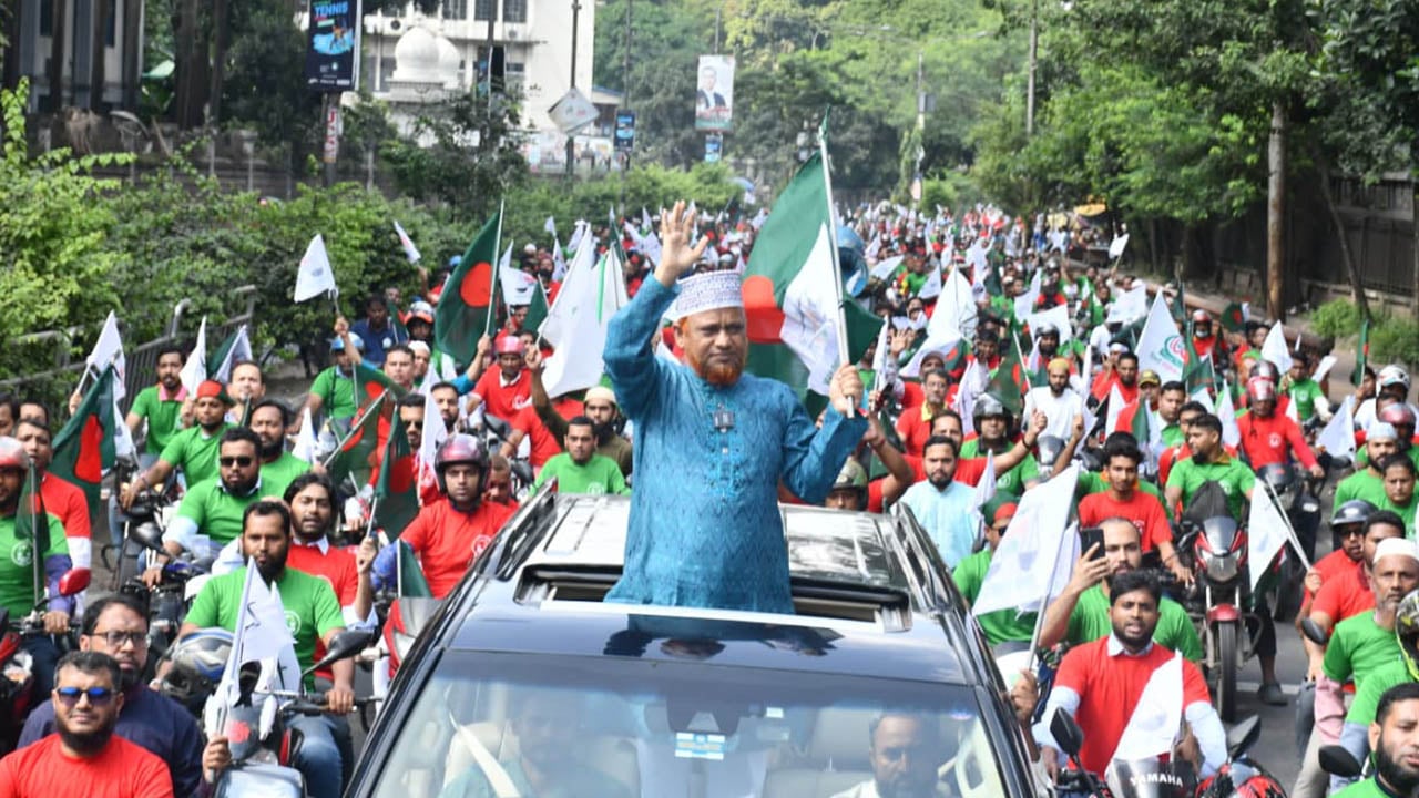 পথসভা শেষে বিশাল মোটরসাইকেল শোভাযাত্রা শাহবাগ মোড় থেকে শুরু হয়ে মৎস্যভবন-হাইকোর্ট মাজার-সিটি কর্পোরেশন-বঙ্গভবন-দৈনিক বাংলা-শাপলা- কামলাপুর-রাজারবাগ-মালিবাগ-মগবাজার-বেইলি রোড-শান্তিনগর-নয়াপল্টন হয়ে পল্টন মোড়ে গিয়ে শেষ হয়। এ সময় দাঁড়িপাল্লার পক্ষে শ্লোগান থেকে তারা।