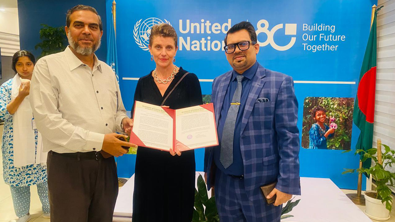 জাতিসঙ্ঘের ৮০তম বার্ষিকী উপলক্ষে জাতিসঙ্ঘের ঢাকাস্থ কার্যালয়ে অনুষ্ঠানের আয়োজন করা হয়। সোমবার সন্ধ্যা সাড়ে ৬টায় জাতিসঙ্ঘের আবাসিক সমন্বয়কারী মিস. গোয়েন লুইস এর আমন্ত্রণে আয়োজিত এ অনুষ্ঠানে বিভিন্ন দেশের রাষ্ট্রদূত, হাইকমিশনার, কূটনীতিক, রাজনৈতিক ব্যক্তিত্ব, অবসরপ্রাপ্ত সামরিক কর্মকর্তা, সরকারের উচ্চপদস্থ কর্মকর্তা এবং সিভিল সোসাইটির গণ্যমান্য ব্যক্তিবর্গ অংশগ্রহণ করেন।