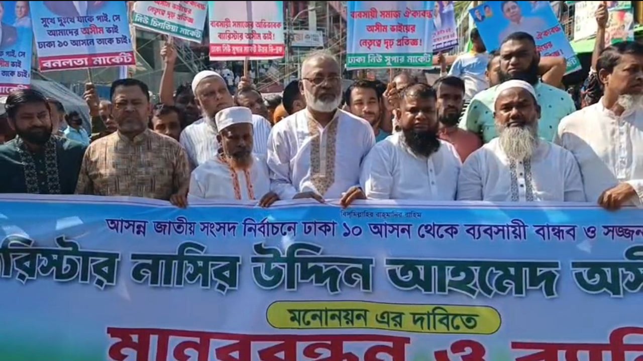 ঢাকা-১০ আসনে বিএনপির দলীয় মনোনয়ন প্রত্যাশী ও আন্তর্জাতিক বিষয়ক সম্পাদক ব্যারিস্টার নাসির উদ্দিন আহমেদ অসীমের সমর্থনে নিউ মার্কেট এলাকায় অনুষ্ঠিত হয়েছে মানববন্ধন ও র্যালি।