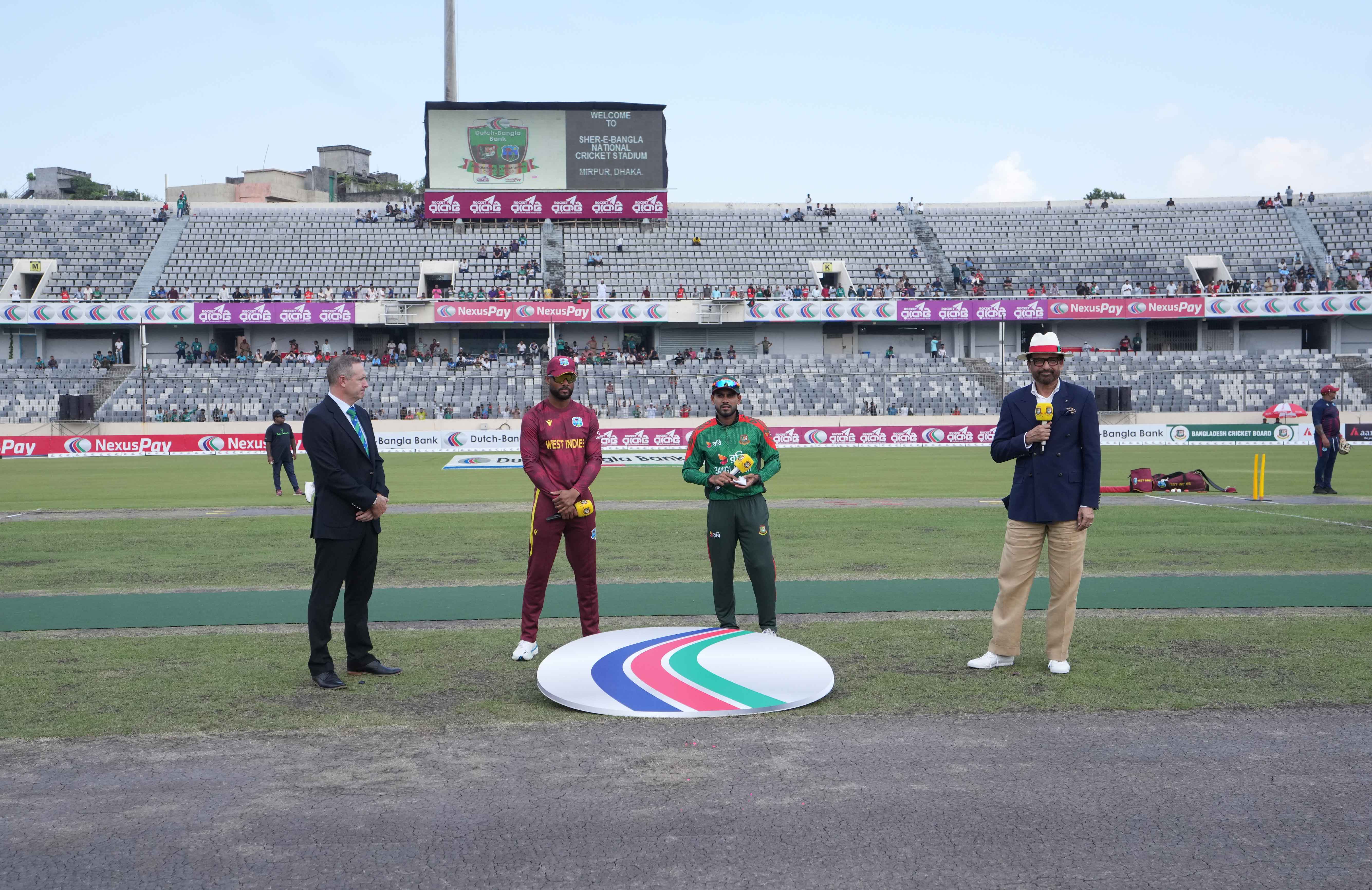 বাংলাদেশের দেওয়া ২১৪ রানের লক্ষ্যে ব্যাট করতে নেমেছে ওয়েস্ট ইন্ডিজ। প্রতিপক্ষের মতো স্বাগতিক বাংলাদেশ স্পিনার দিয়ে বোলিং আক্রমণ শুরু করেছে।