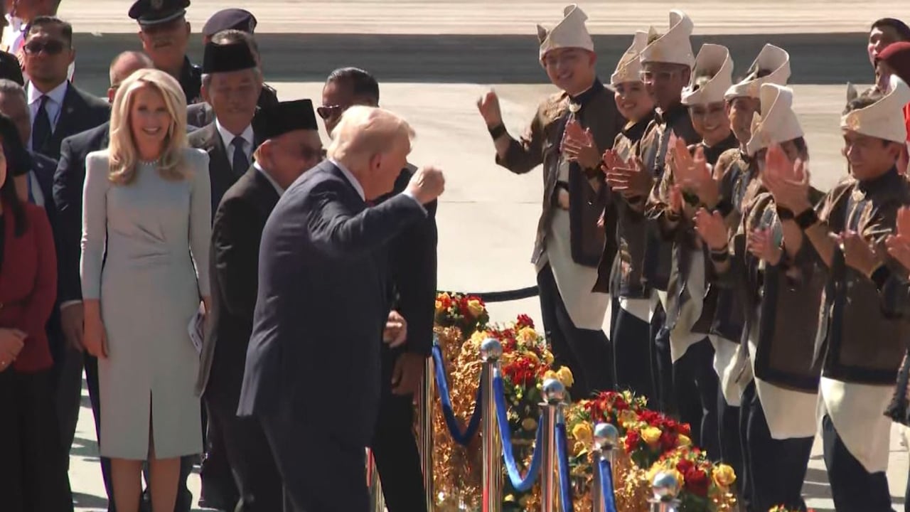 কুয়ালালামপুরে দক্ষিণ-পূর্ব এশিয়ার দেশগুলোর আঞ্চলিক জোট আসিয়ান শীর্ষ সম্মেলনে যোগ দিতে মালয়েশিয়ায় গেছেন মার্কিন প্রেসিডেন্ট ডোনাল্ড ট্রাম্প। কুয়ালালামপুর আন্তর্জাতিক বিমানবন্দরে তাকে স্বাগত জানাতে হাজির হয়েছিলেন একদল শিল্পী। তাদের পরিবেশনা দেখে নেচে ওঠেন ট্রাম্প।